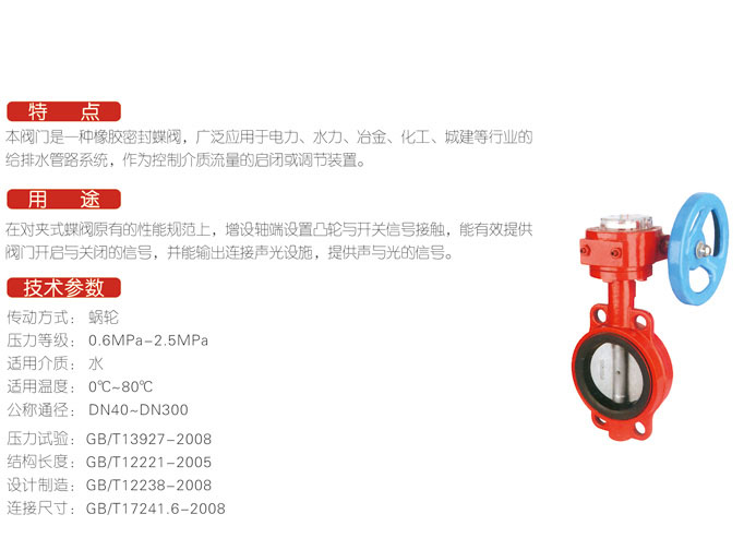 WBSX-16軟密封對夾式信号蝶閥 - 消防閥門系列 - 河北昆明本裕金属制造有限公司