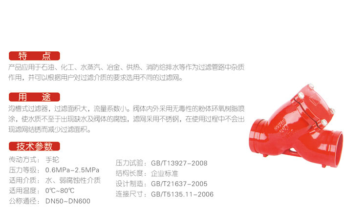 SGX-16溝槽式Y型過濾器 - 消防閥門系列 - 河北昆明本裕金属制造有限公司